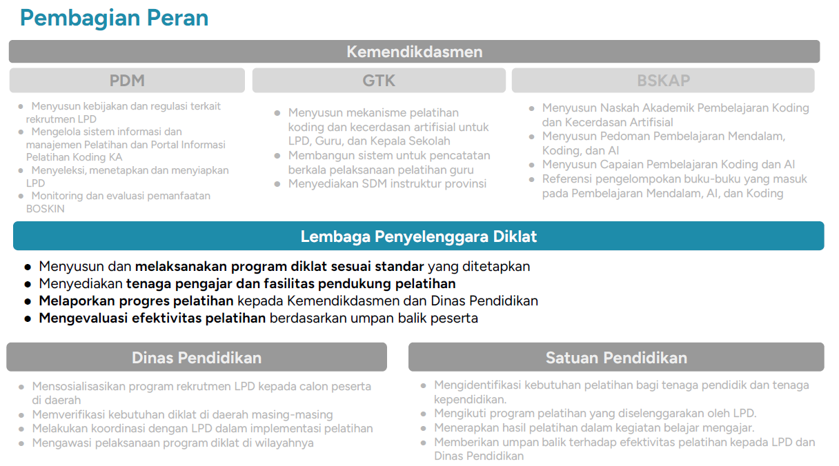 Program Pembelajaran Koding dan Kecerdasan Artifial adalah inisiatif dari Kementerian Pendidikan Dasar dan Menengah (Kemendikdasmen) untuk membantu guru dan siswa menghadapi era digital.